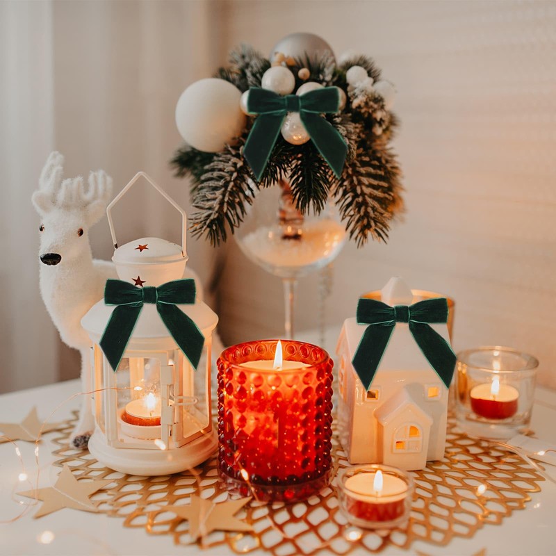 - Ready To Use Premium Quality: Each 3.5 x 3.5 inch green Christmas bow comes pre-shaped using luxurious nylon velvet ribbon in rich forest green that won't fade or lose its vibrant color. No crafting skills needed - simply attach these beautiful green velvet bows for instant professional-looking natural decorations