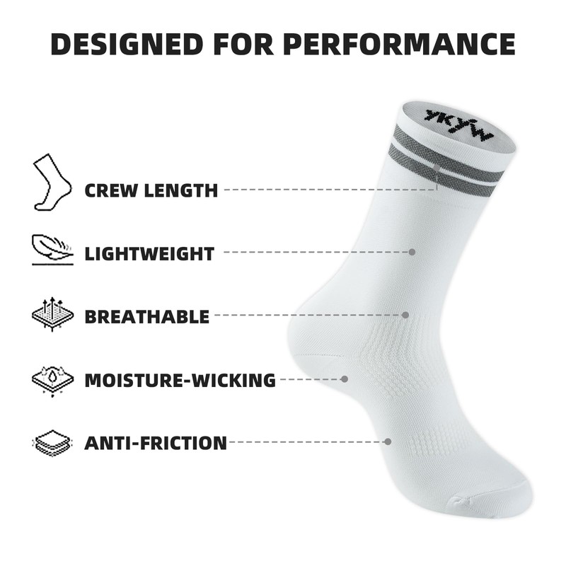 YKYWBIKE Cycling Socks for Men-Athletic Crew Bike Socks Men Cyling,Compression Biking Socks,Breathable Cushioned Riding Socks,Moisture Wicking MTB Socks,Aero Cycling Socks White
