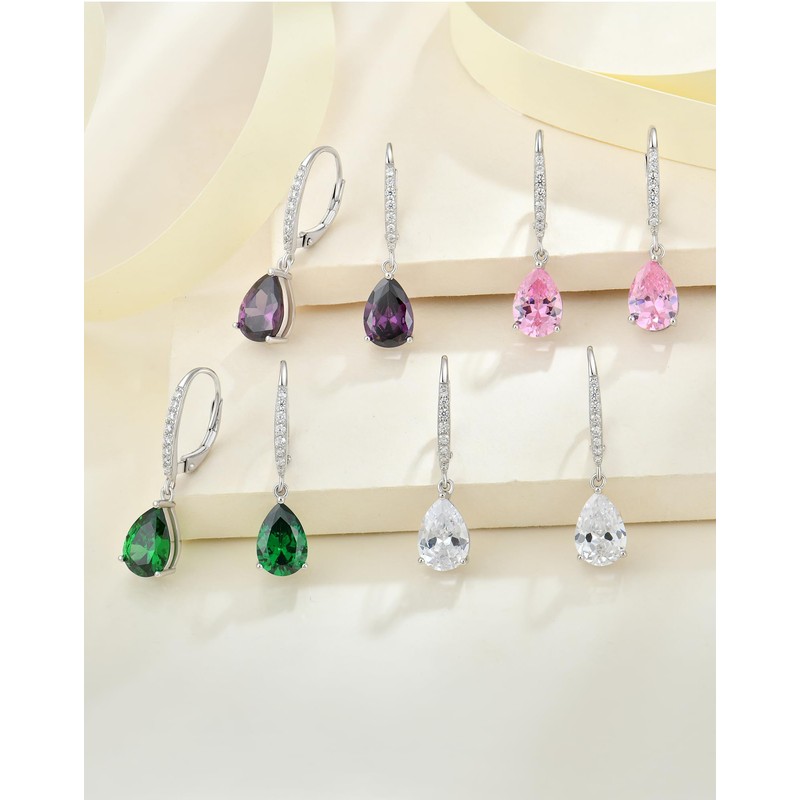 YL 10x7mm Sterling Silver Dangle Earrings Cubic Zirconia 925 Pear Leverback Earrings for Women Teardrop Created Birthstone Drop Earring Jewelry