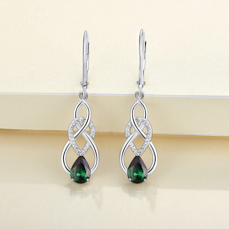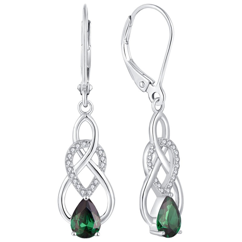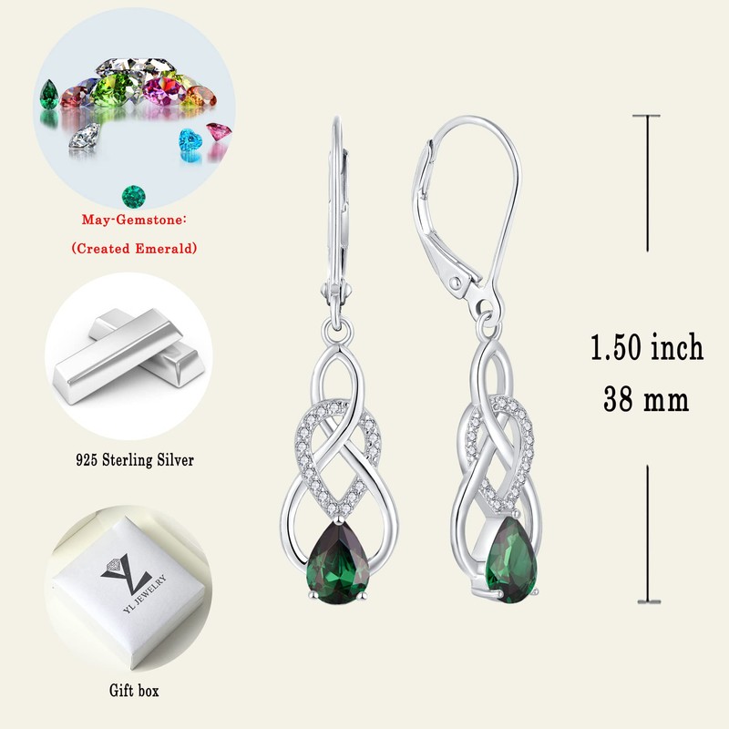 YL Celtic Knot Earrings 925 Sterling Silver Infinity Dangle Drop Earring Created Emerald Twist Leverback Jewelry for Women