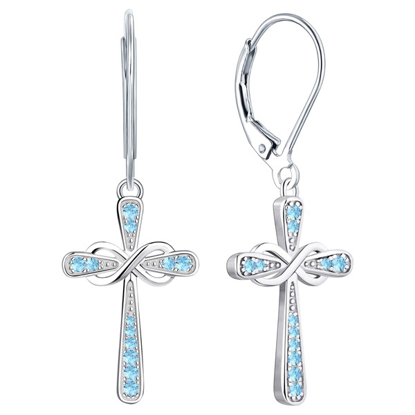 YL Cross Earrings Sterling Silver Infinity Dangle Drop Earrings Created Aquamarine Criss Leverback Jewelry