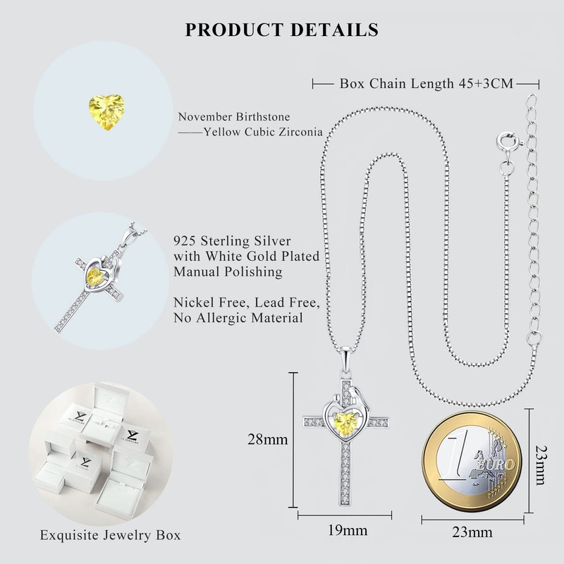 - Material: 925 sterling silver white gold-plated and manually polished. Setting with November birthstone yellow cubic zirconia. Nickel-free, no allergic material.