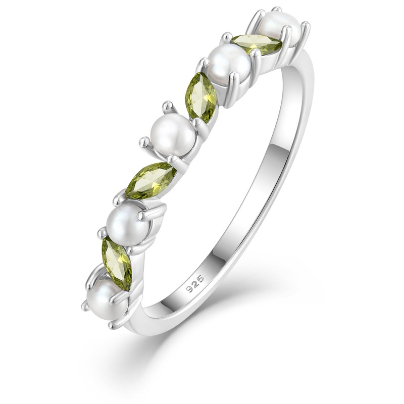 YL Peridot Pearl Ring for Women 925 Sterling Silver Mariquesa Created Birthstone Stackable Rings Eternity bands Jewelry Size 6