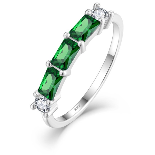 YL Green Emerald Cushion Cut Stackable Rings for Women 925 Sterling Silver 5x3 mm Created Birthstone Eternity bands Stacking Jewelry Size 6