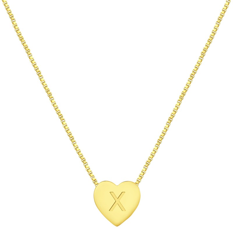 YL Initial Necklace 925 Sterling Silver Heart Letter Pendant 18K Gold X Alphabet Necklace for Women, Metal, cubiu zirconia