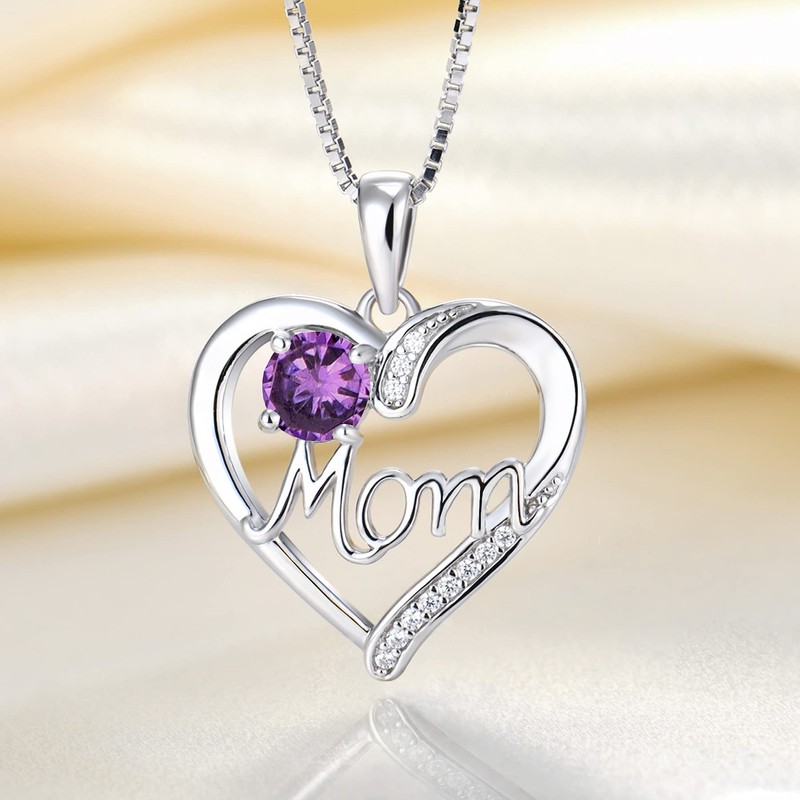 YL Mother's Day Heart Necklace for Mom Sterling Silver Love Heart Pendant Created Amethyst Jewelry for Women