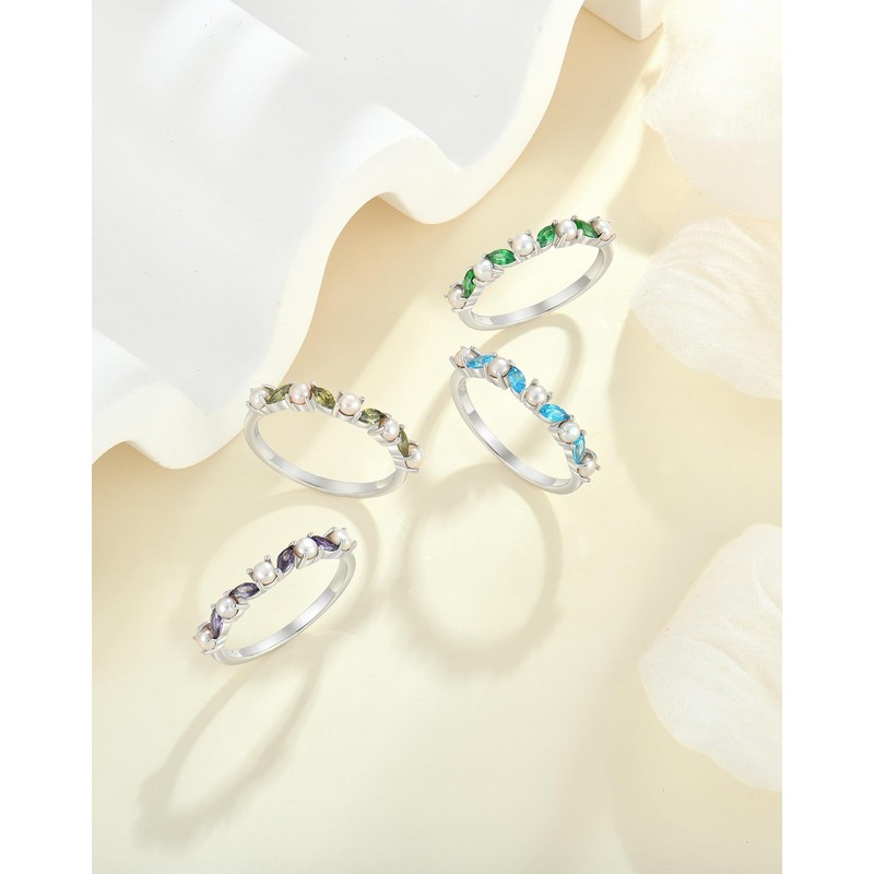 - Stunning YL Design: Uncover the mystery of statement and eternity with the yl pearl ring for women. Exuding timeless charm, 4 pieces 4x2 mm mariquesa-brilliant-cut created purple amethyst and 5 pieces 3 mm white pearls are skillfully set in yl stackable ring bands
