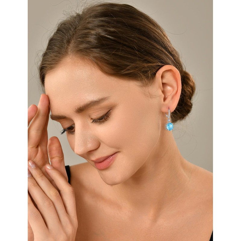YL Round Drop Earrings for Women 925 Sterling Silver Rose cut March Birthstone Aquamarine Leverback Dangle Earrings Gifts for Wife Girlfriend