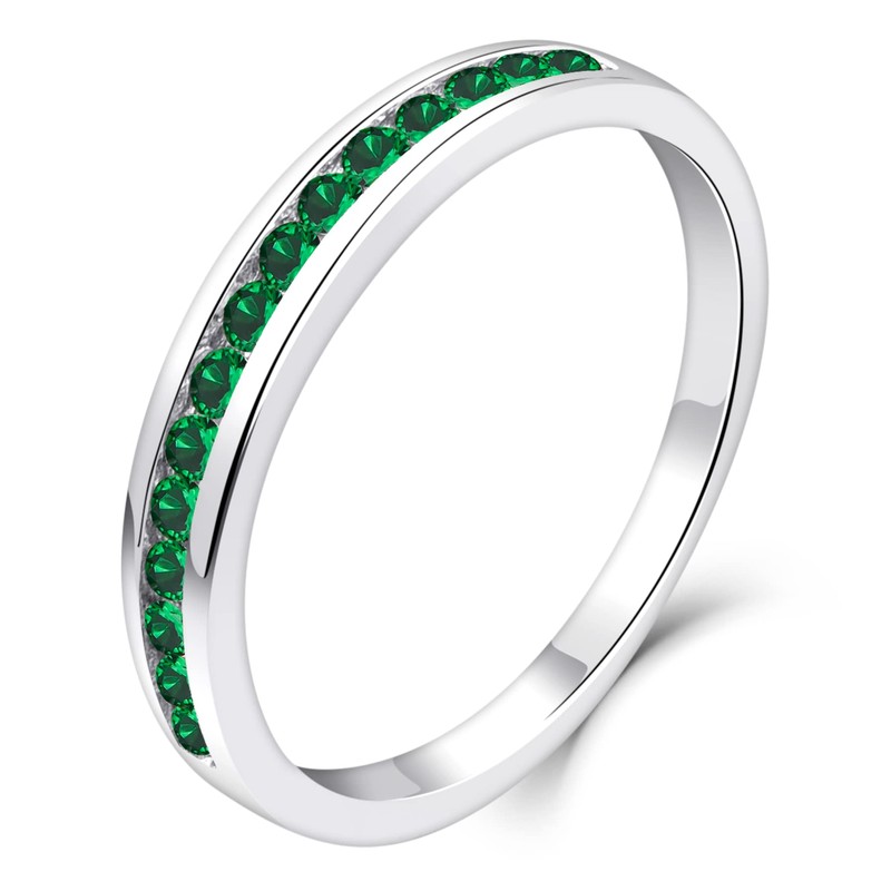 YL Stackable Ring Sterling Silver Created Emerald Eternity Bands for Women-size9
