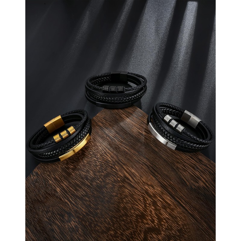 - Timeless Style: Packaged in fashion black velvet pouch, the classic design of Stainless Steel leather bracelets make them a timeless addition to any fashion collection