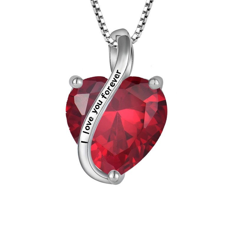 YL Women's Necklace 925 Sterling Silver "I Love You" Pendant 12 Birthstone Cubic Zirconia Necklace Jewellery Gifts for Mother Girlfriend Women, Silver, Ruby
