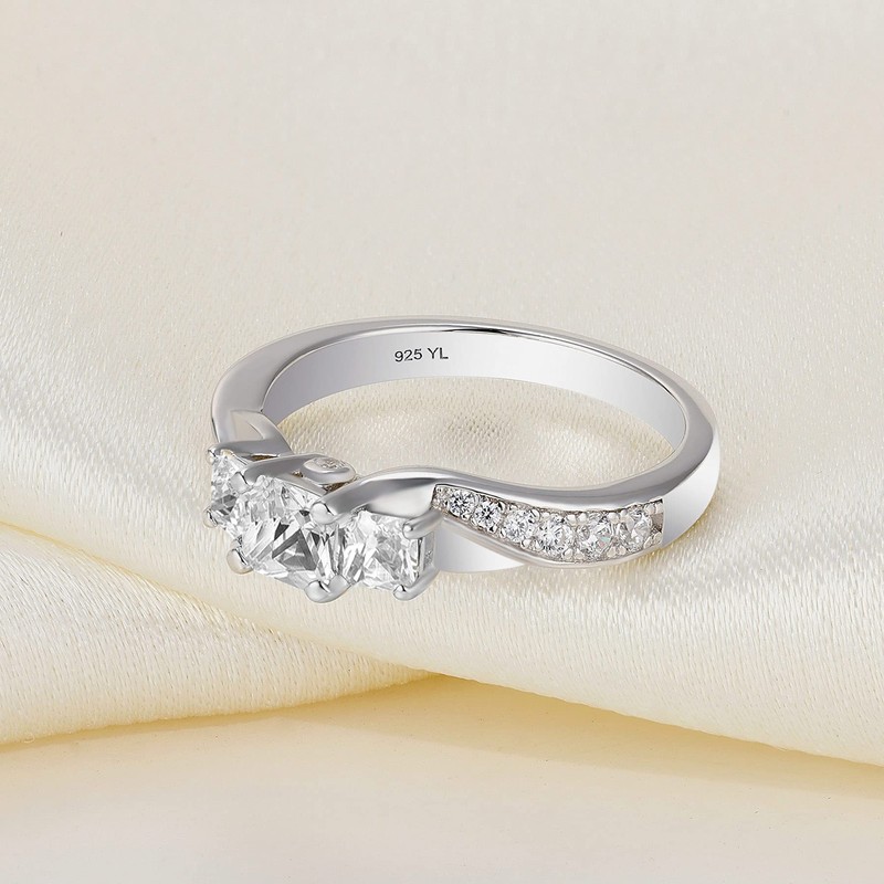 YL Women's Sterling Silver Clear Cubic Zirconia 3-stone Princess Cut Wedding Rings for Engagement-Size7