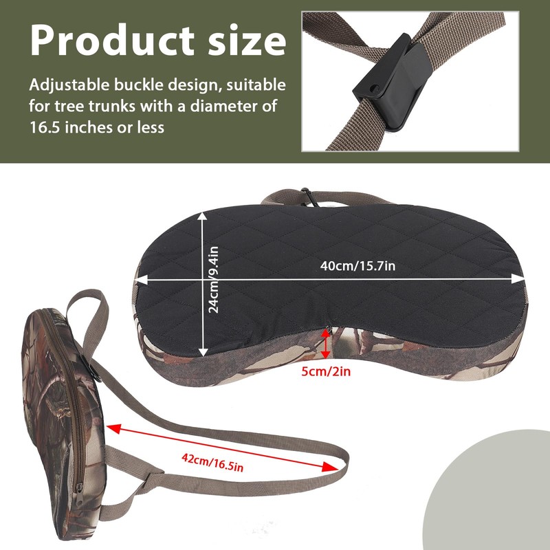 Engineered for hunters and outdoor adventurers, this adjustable knee cushion straps securely to trees, saddles, or gear, providing all-day comfort and superior concealment in the wilderness, whether you're saddle hunting, camping, or fishing, its high-density sponge lining ensures lasting support, while the 600D camouflage fabric + reinforced composite material resists water, dirt, and wear