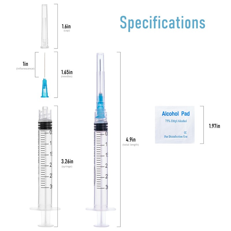 Quantity: 20 pack 3cc with 23 Gauge 1inch 25mm, 20 pack Disposable Gauze Pads