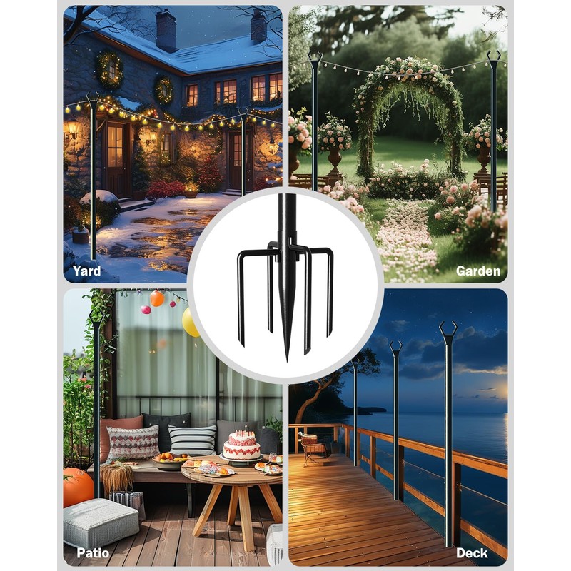 - EASY INSTALLATION: Equipped with sturdy ground spikes, these string light poles for outside can be effortlessly inserted into the soil for a secure hold, requiring no complex tools or professional expertise for setup.