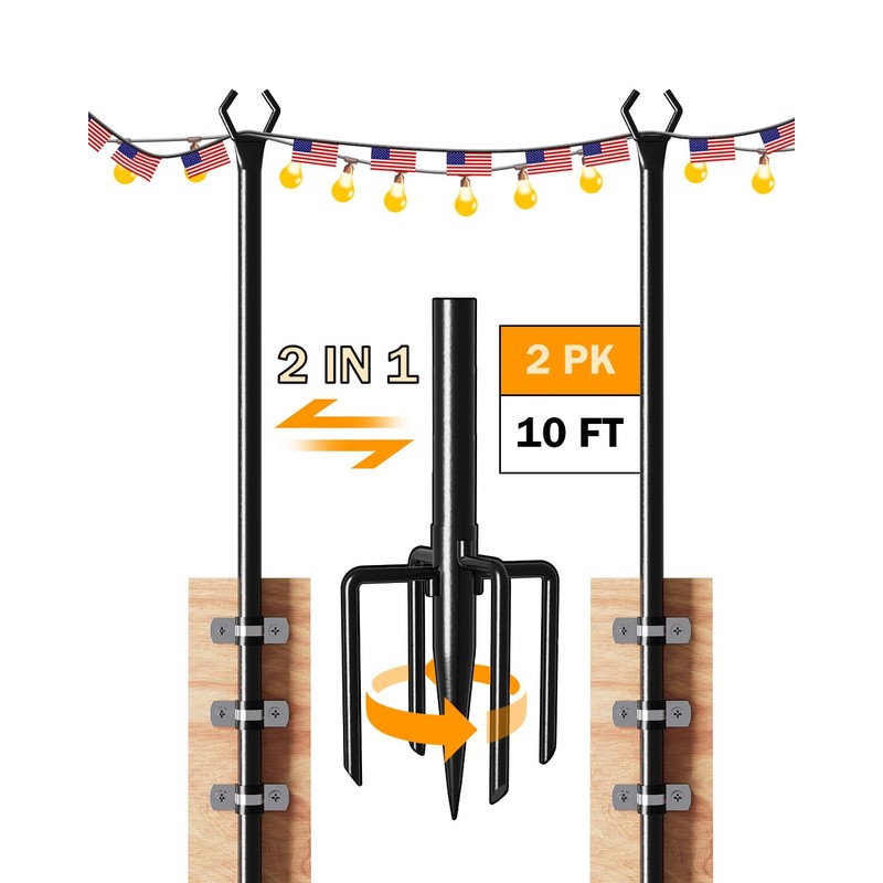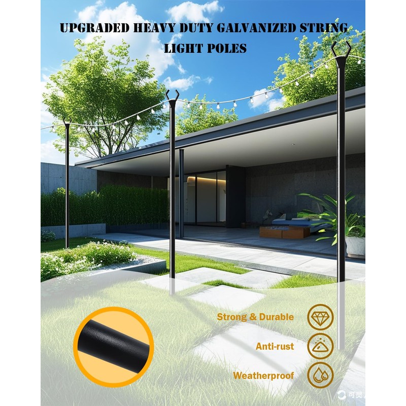 - RUST-PROOF PROTECTION: Protected by a robust rust-resistant coating, these string light poles for outside maintain their sleek appearance and integrity over time, ensuring years of reliable service without corrosion or fading.