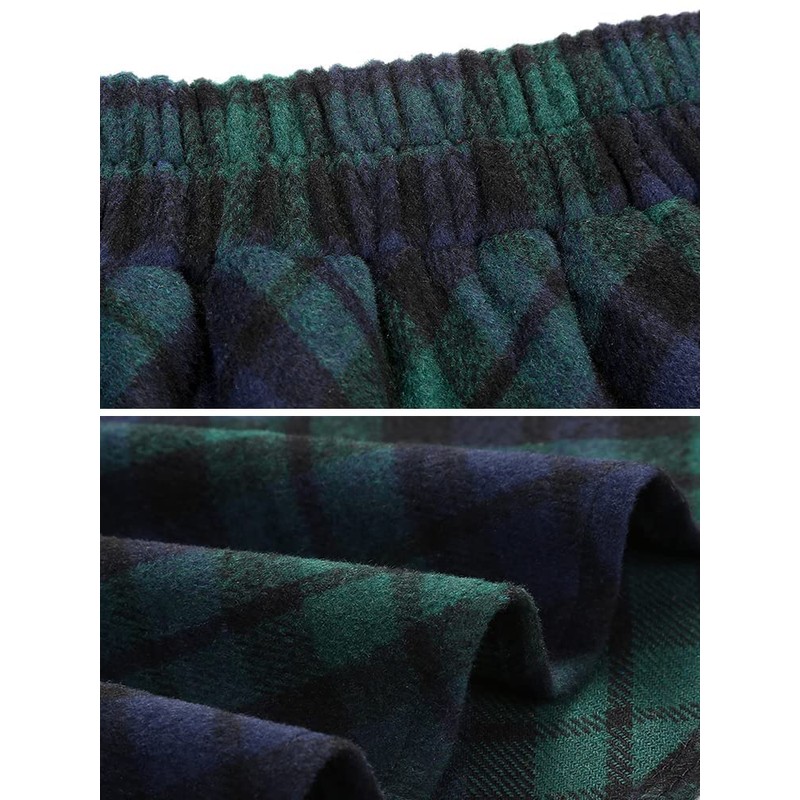 Ylingjun Long Plaid Wool Skirt for Womens Winter Fall High Elastic Waist A Line Flared Pleated Wool Skirts, Green/Long, XX-Large