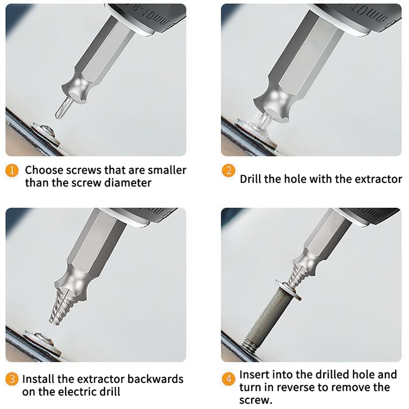 - Easy to use: first drill a pilot hole with the drill of the screw remover, choose an extractor of suitable size, let the extractor bite and finally use the remover to remove the screw from the hole. The adapter makes it easier to replace the extractor, reduces tedious replacement steps and saves time.