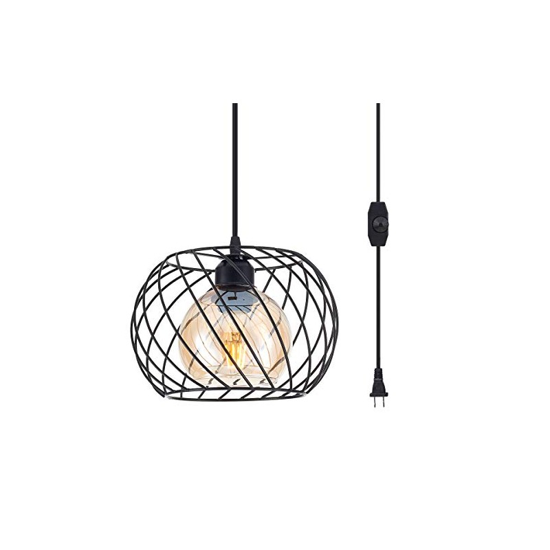 - 【ON/OFF Dimmer Switch】This swag light has a convenient in-line on/off dimmer switch. To complete the minimalist style and dimmer fuction, a 60-watt vintage filament incandescent equivalent DIMMER LED bulb is suggested (60W max, not included).