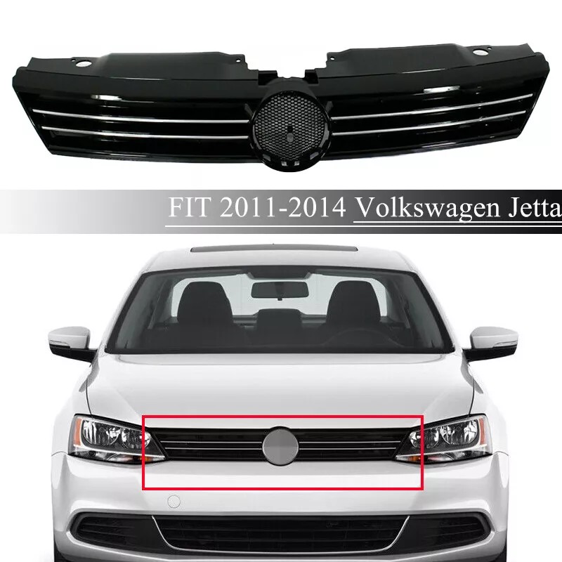 YLT Auto Grille Black Shell Grill W/chrome Trim Fit 2011-2014 Volkswagen Jetta
