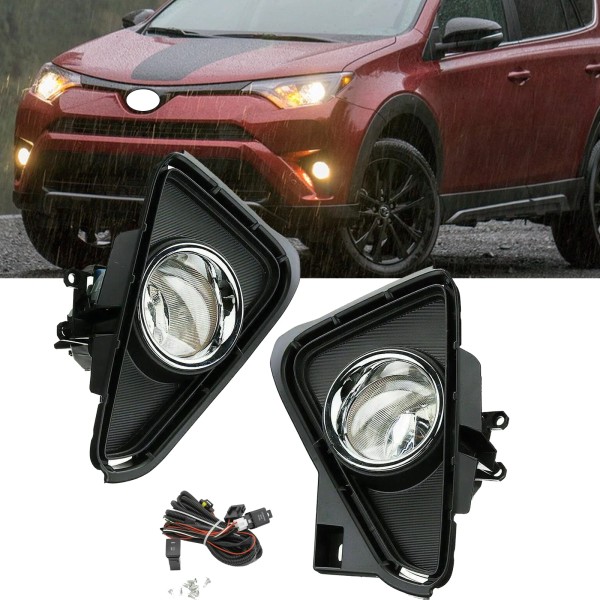 YLT Auto Pair For 2016 2017 2018 Toyota RAV4 Clear Bumper Driving Fog Lights W/Switch Kit