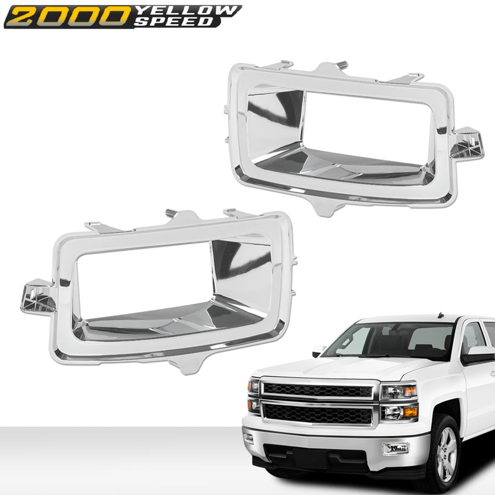 ylwspeed2000 Fit For Chevy Silverado 1500 2014-2015 Fog Light Trim Set Left and Right Chrome