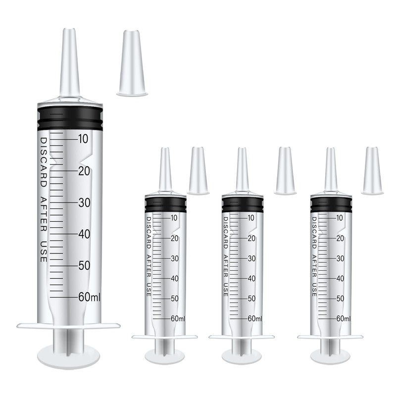 - 【Package includes】: 60ml 4pacs syringes with tip cap,Sufficient for use and replacement.