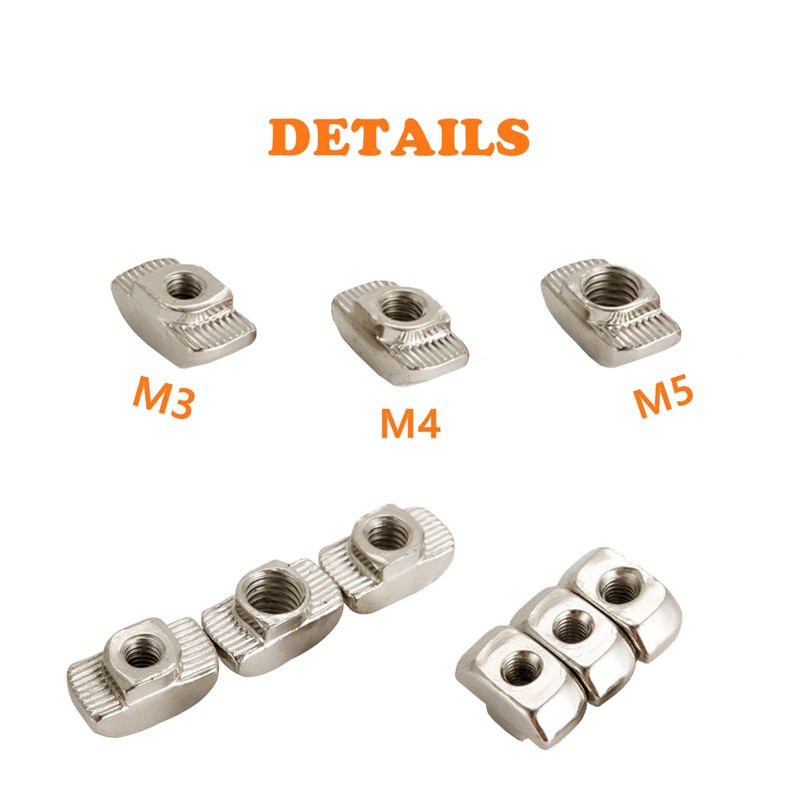 - T-Nuts suitable for 2020 series aluminum profile,Widely used for building industrial aluminum frame structures, 3D printers, CNC Routers, CNC laser cutters, robotics projects.