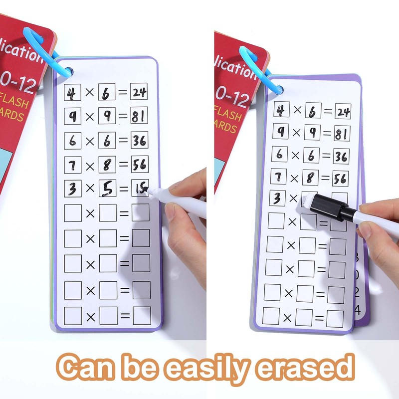 • 【Interactive Learning】Perfect for interactive learning, these multiplication flashcards can be used as teaching aids in various settings. The included Dry Erase Pens enhance the learning experience with easy writing and erasing