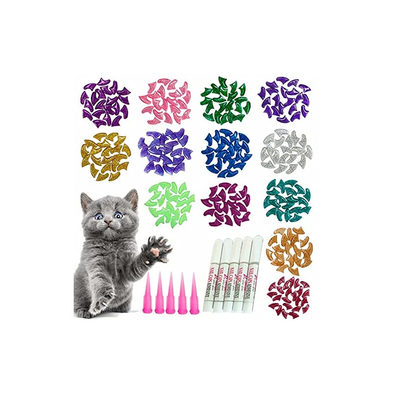 - 【Safe and Comfortable】Cat claw caps glitter adopted premium natural vinyl resin material, soft and comfortable to wear. Not affect the normal expansion and contraction of the cat, Majority of cats can adapt quickly.The adhesive glue have passed the Europe MSDS certification, Safe and No-toxic.
