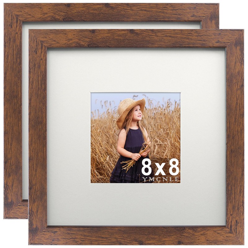 YMCNLE 8x8 Picture Frames, Display 4X4 with Mat or 8x8 without Mat, Wall and Tabletop Display Photo Frames, Brown, 2Pack