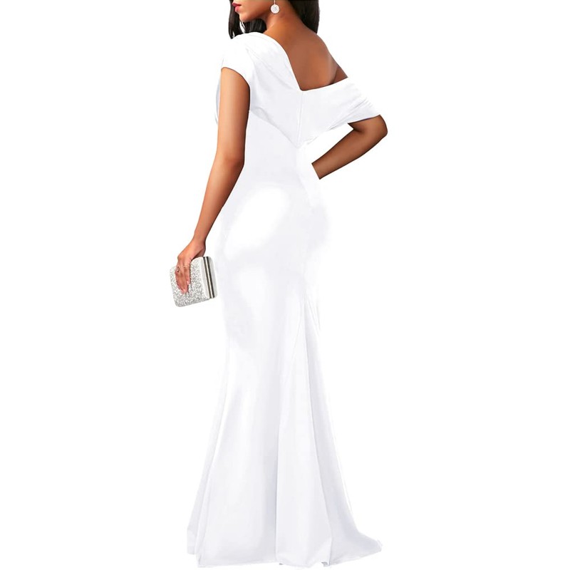 YMDUCH Women's Elegant Sleeveless Off Shoulder Bodycon Long Formal Party Evening Dress White