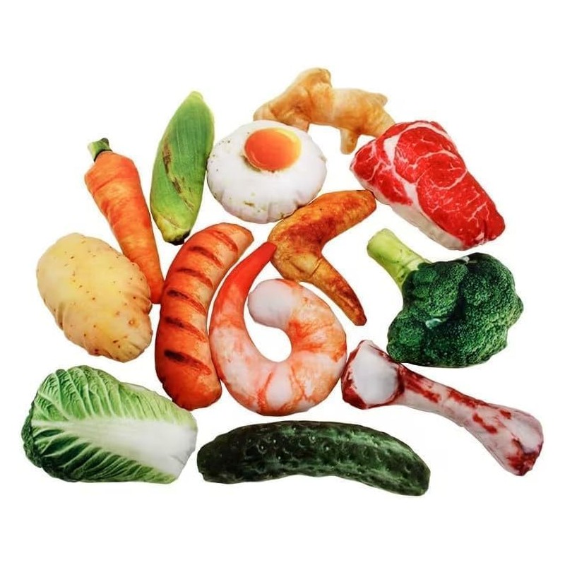 - Plüsch-Design: realistisches Quietschspielzeug in Steakform, hergestellt aus weichen Plüschmaterialien für ein angenehmes Kauerlebnis