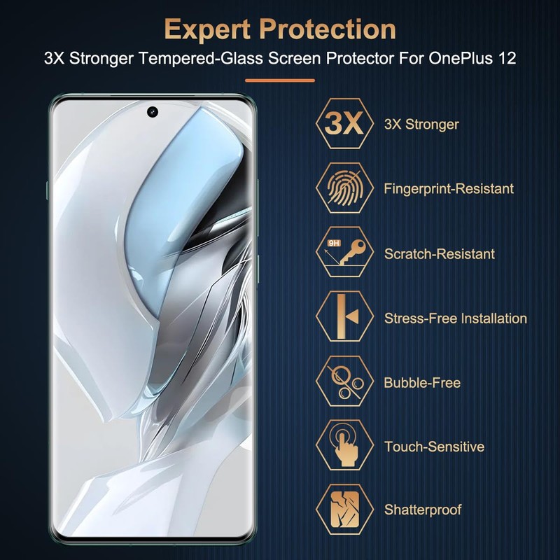 - Perfect fit: tempered glass screen protector specially designed for Oneplus 12 uses precision laser technology, 3D curved edge 100% covers the screen, adheres perfectly to the phone screen all, providing maximum protection for Oneplus 12.