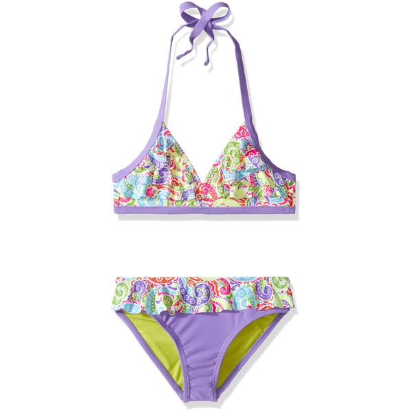 YMI Traje de baño de Dos Piezas Big Tiki para niña, Hebe Morado., 14