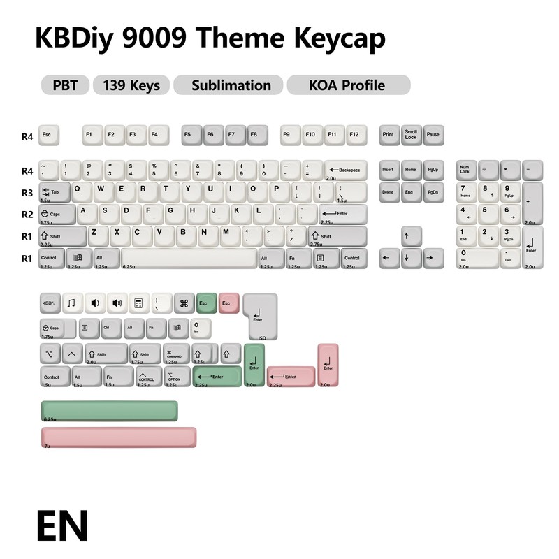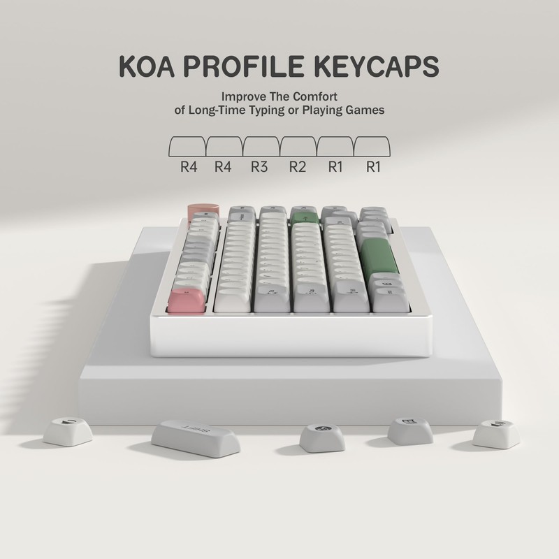 - KBDiy KOA Profile-KOA Profile similar to MOA Profile ,Ergonomic Arc layout, concave arc, fingers contact the keycaps in a larger area, the touch is smoother, making you feel more comfortable when using