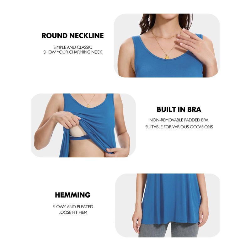 - Bra shirt: The women's wide strap tank top features a non-removable padded bra and an elastic underbust band that provides effective support, coverage. This loose fit undershirt with integrated bra can create a sexy silhouette for women, shape beautiful curves.