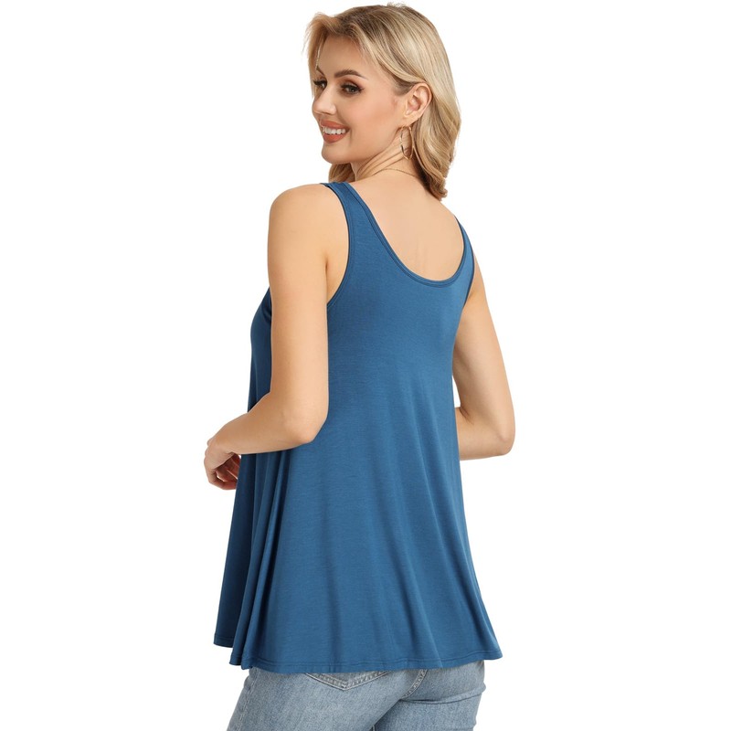 Ymmchy Women's Tank Top with Integrated Bra Vests Stretch Loose Fit Sleeveless Tops S-XXXXL, blue, M