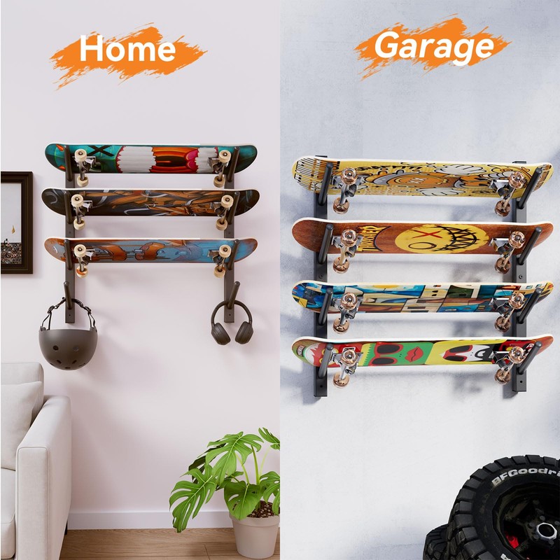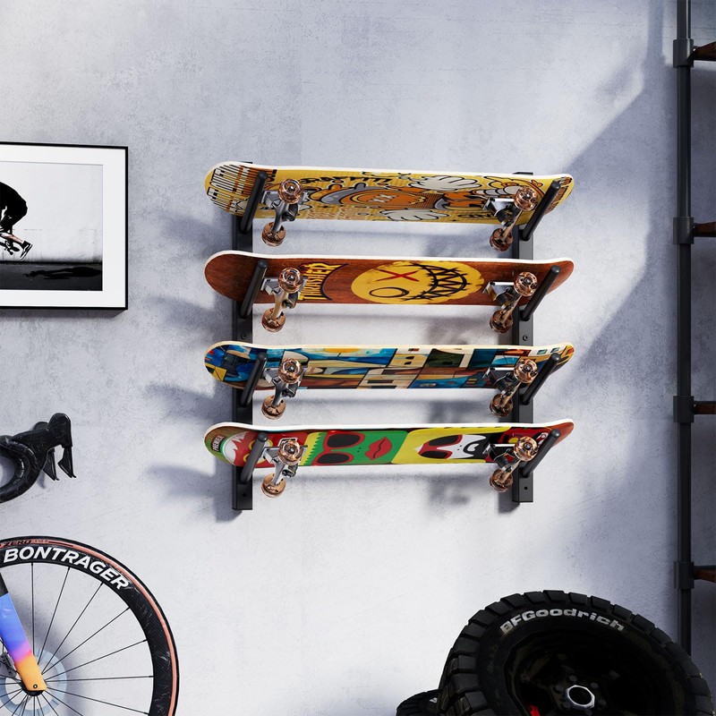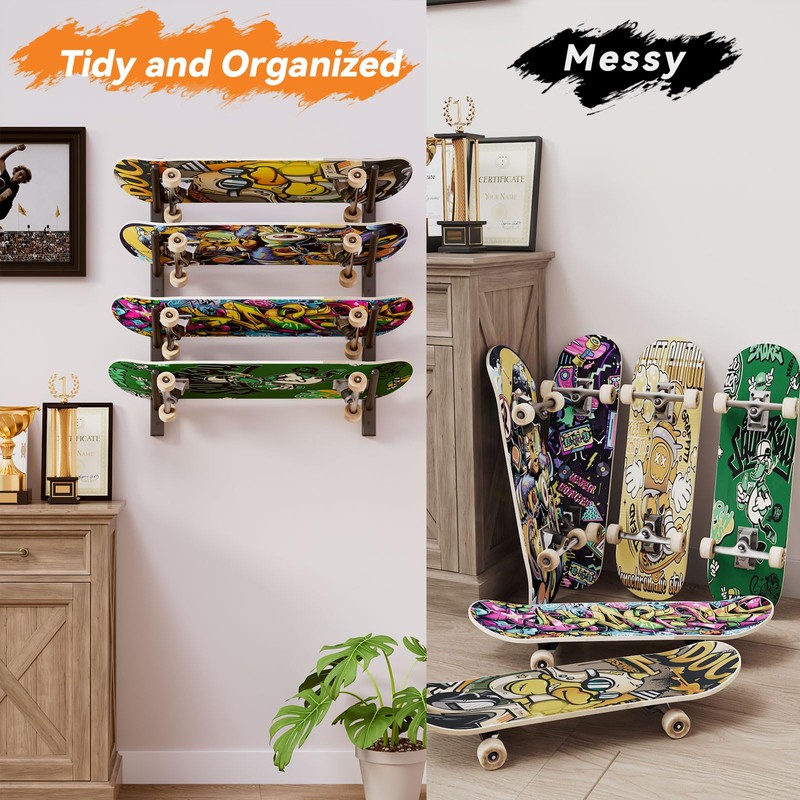 - 【Space Saving】The 4 tier skateboard wall mount as a great space saver to keep things organized, keeps the boards out of the way. And great for skateboard display. Must have for families of boarders