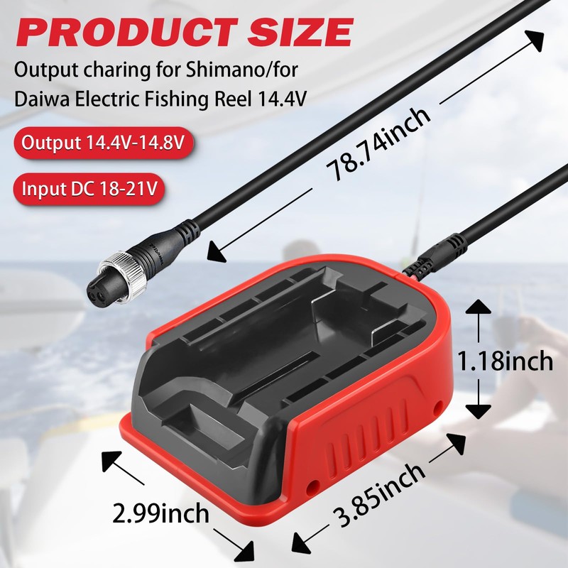- 【Fishing Reel Battery Adapter Advantage】This Fishing Reel Battery Adapter enables the listed Power Tool batteries to be used on for Daiwa for Shimano Electric Reel, and lets you enjoy the benefits of extended operating time of tool batteries on existing for Electric fishing Reel.If you use this product, you can install a DeWalt 20V Lithium Battery, so you can solve the problem of running out of battery. You can quickly replace them, so you can rest assured even in Outdoor fishging all day.