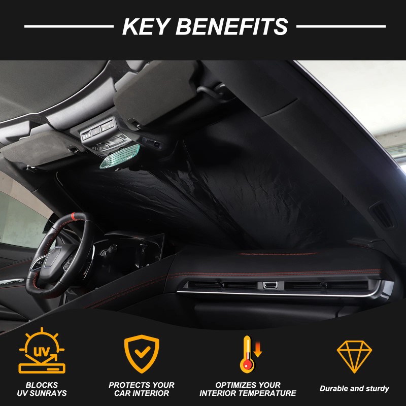 Ynei Foldable Windshield American Flag Sun Shade Custom Fits Corvette C8 2020-2024