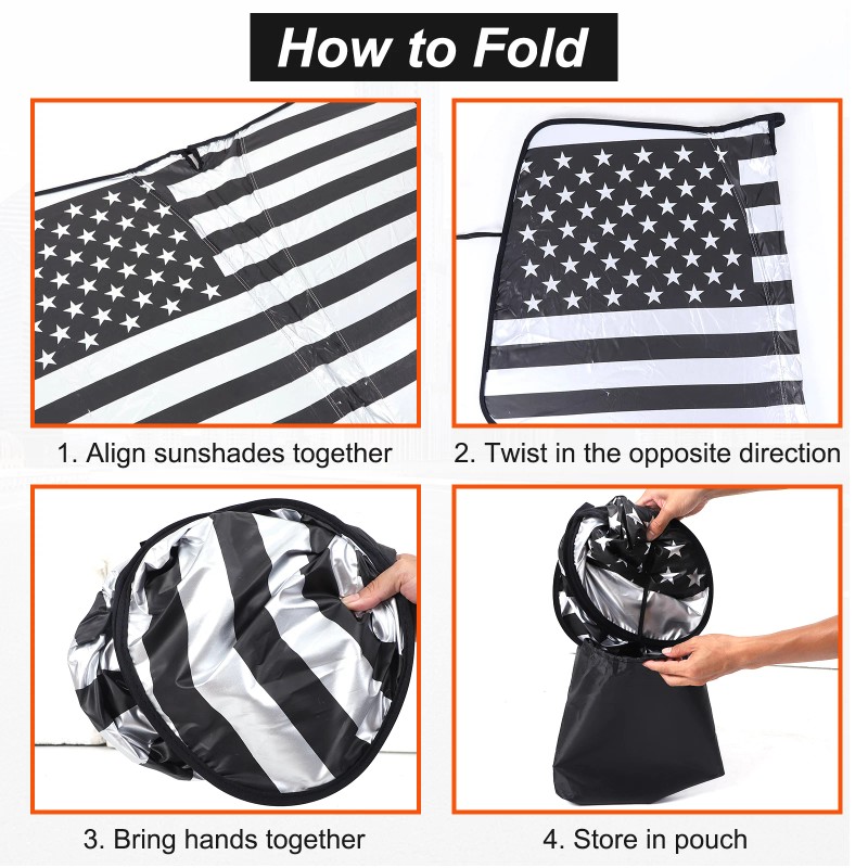 Easy to Use and Store: Unlike other products on the market, We use a Lightweight collapsible car window sun shade design. The windscreen sunshade can be easily popped up and folded in seconds for daily use. You can easily tuck the car sun visor protector into your door pocket.
