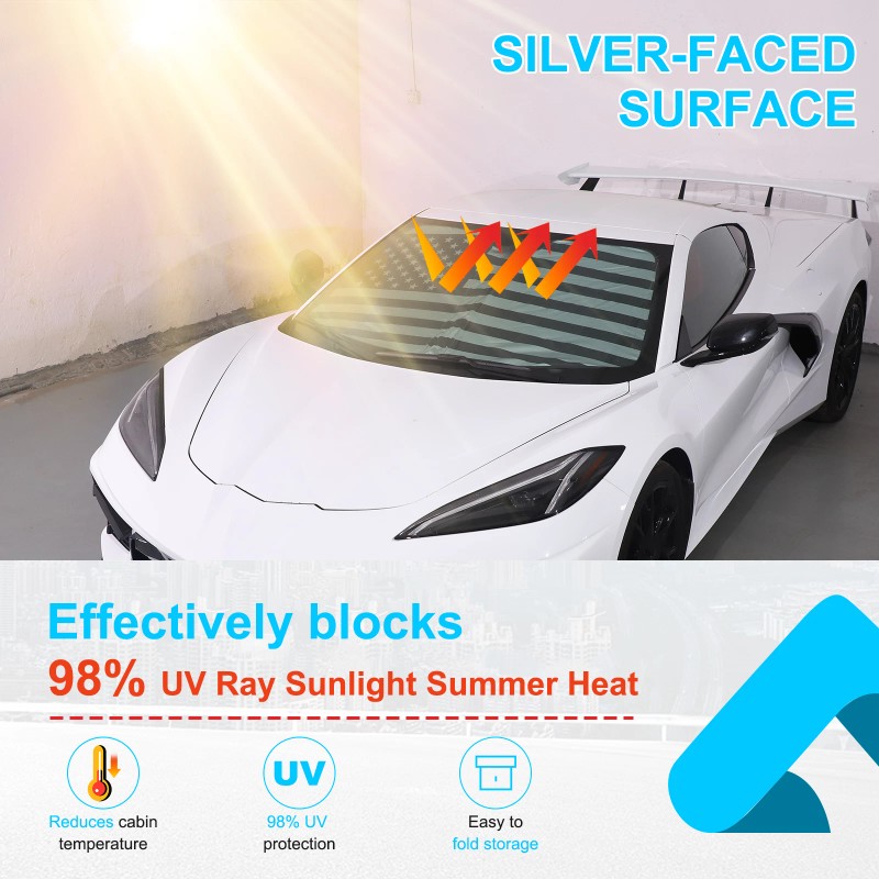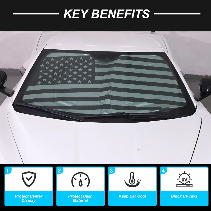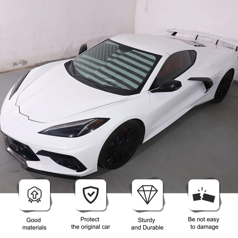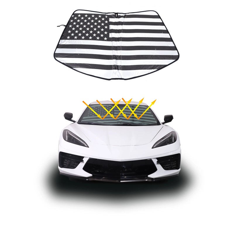 Ynei Foldable Windshield American Flag Sun Shade Custom Fits Corvette C8 2020-2024
