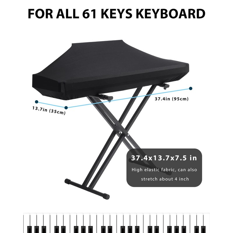 - Keyboard Dust Cover: Our keyboard cover is available for 61/77 key digital electric pianos, quick installation and removal. Size - 37.4"(L)x 17.8"(W) x 7.5"(H).