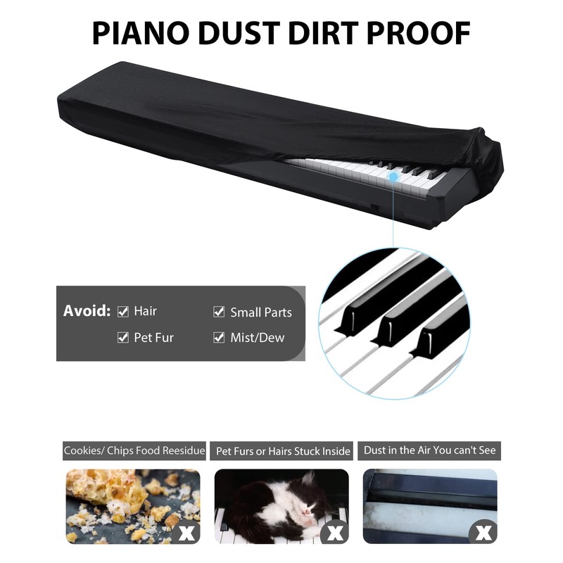 - 61 Key Piano keyboard Cover: A dustproof keyboard cover protects your piano, keeps your piano keyboard clean and safe from getting dirty or scuffed, giving your instrument more elegance and better durability.