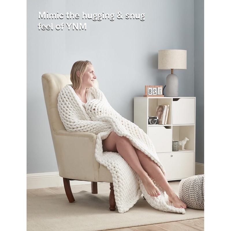 - [Comfortable] This blanket is knitted with a medium weight of 10.6 pounds and matches the YNM Weighted Blanket's embracing and cuddly sensation. Therefore, it is cozy, pleasant, and portable. Whether it's a sofa or a bed, indoors or outdoors, camping or traveling, it can follow you peacefully through all four seasons. Additionally, it is a terrific friend for your pet while you are not present. It is safe and does not shed during usage