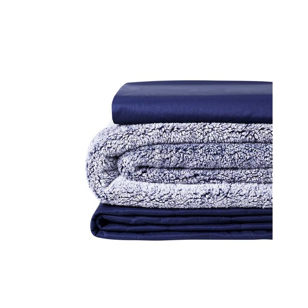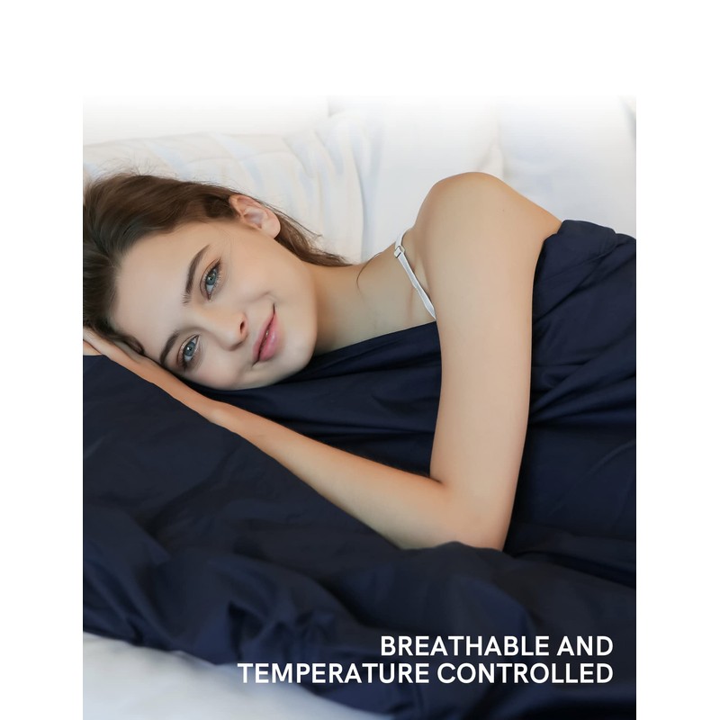 YnM Weighted Blanket and Duvet Covers — Hot and Cold Duvet Cover Set (3 Pieces) — (Teddy Bear Velvet Navy, 48''x78'' 15lbs), Suit for One Person(~140lb) Use on Twin/Full Bed