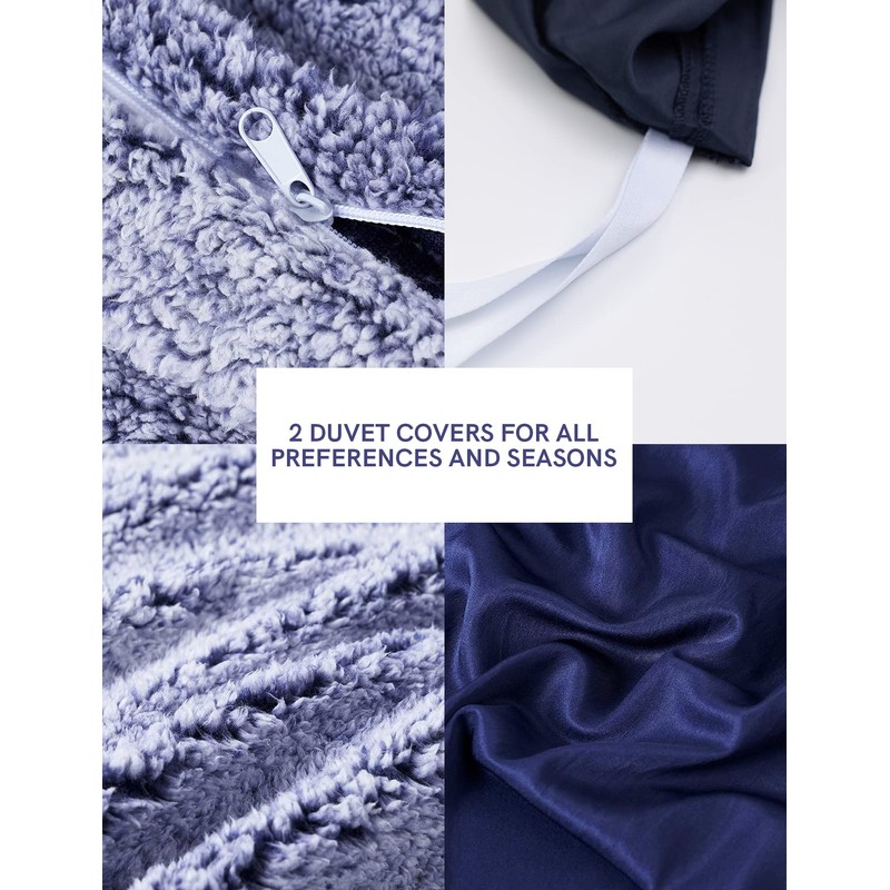 - Two removable duvets offer a cooling or warming option for all seasons and preferences; include string ties on the inside to secure to the weighted blanket