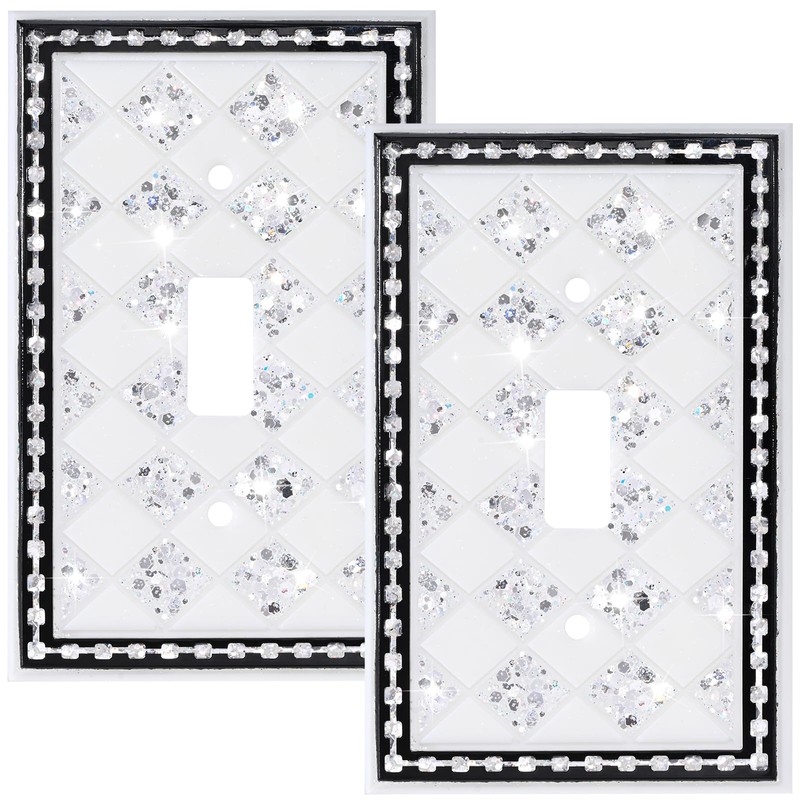 YNQIZKI Bling Light Switch Cover Plate,Silver Sparkle Wall Plate Cover,1 Gang Toggle Midsize 4.9''x3.1'',2-Pack