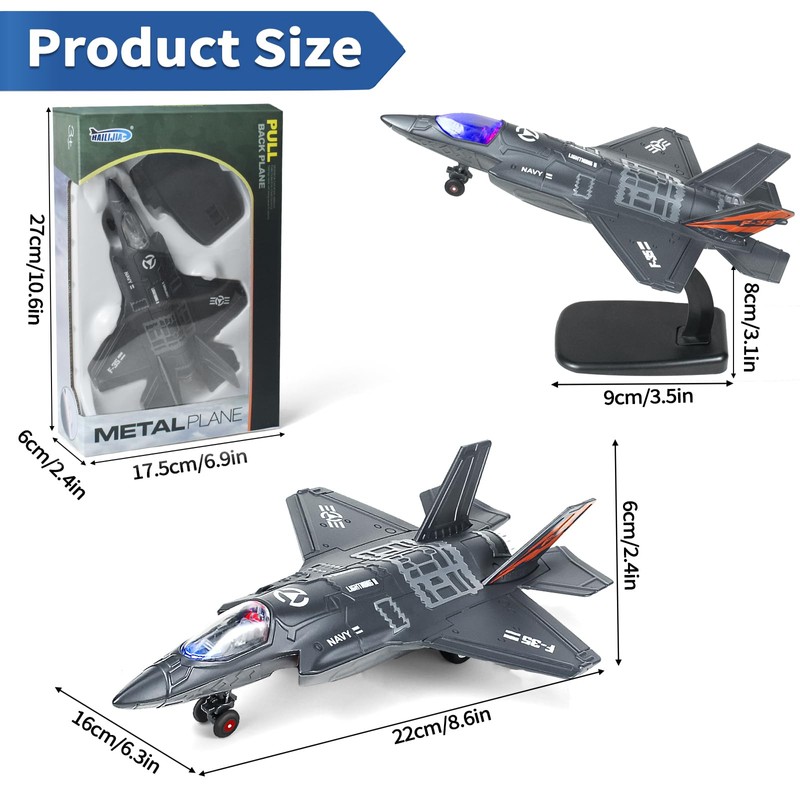 - Pull Back Fighter Airplane Toy: Comes with the black plastic airplane holder, kids can display the fighter plane on study room, so cool and add more fun; Airplane toy pull-back-and-go, very easy to operate. Just pull them back and watch them go, also children can place it on table top as plane model decoration after using. Kids will love playing with it!